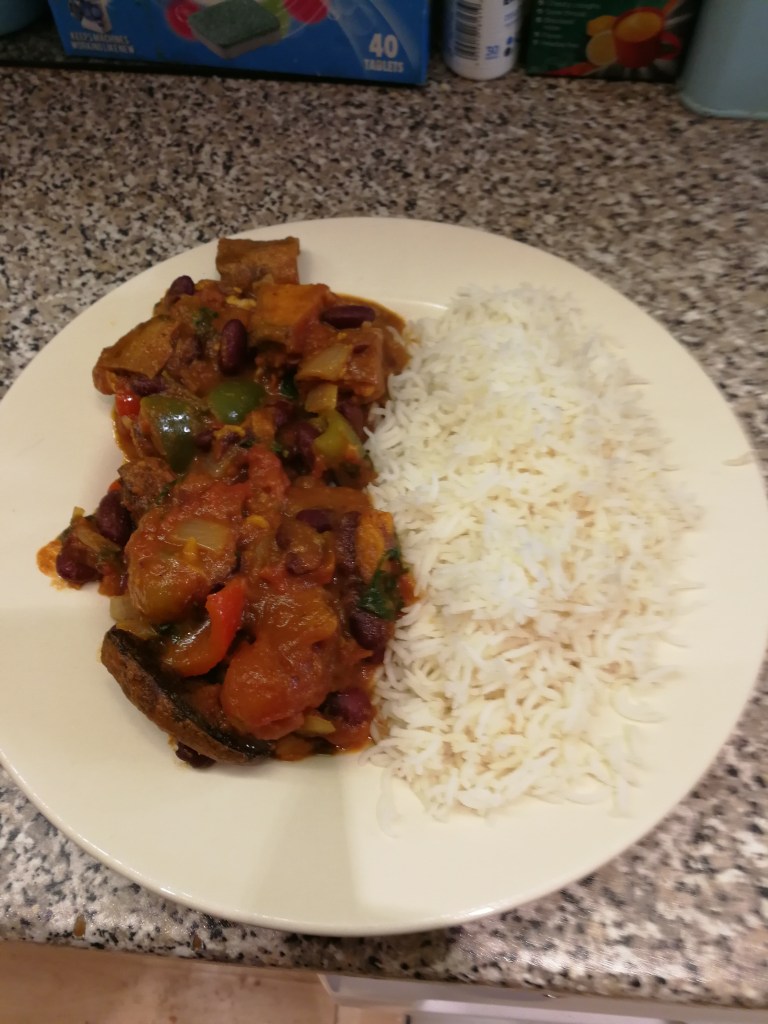 I spent the next 2 hours catching up on housework and getting everything ready so that I can start cooking dinner as soon as I get back from my run. This afternoon I had a 5 mile easy run to do so I thought I would bring my lovely dog Tigger with me. I have mentioned this before but Tigger does not like men taking him for walks. When we got Tigger he was pup and he has always been this way. Tigger would get very exited but when he gets 10 feet or so from the front door he then refuses to budge and sits down. If I try to give him a gentle tug then he would lay down, If I try again he would lay on his back with his feet in the air. This can be embarrassing and frustrating when you want to go for a run. Most of the time I leave it to the girls to walk him as it’s easier. Well today was a good day as he did actually let me take him for a run, Tigger tried to sit down once but changed his mind. We are half a mile from a park so we ran there, in the park I was able to take the lead off Tigger and he ran by my side the whole time. It was a fantastic run although my pace was a little faster than I intended. Total: 5.40 miles in 48:25 8:58 min/mi Today I cooked my very first vegan meal, a veggie-con-carne as Jamie Oliver put it, I am not vegan and have no plans to ever be but when I saw Jamie Oliver cook it I thought wow, this looks great. I don’t think it hurts to leave meat off the plate every now and then either (I know vegan is more than just giving up meat). The meal was really delicious but I put too much cayenne pepper in it, I loved the spice but my wife and daughter was not so impressed, my wife even got a can of drink out off the fridge and stuck her tongue onto it to cool her down lol. As usual I made extra so I can put in tubs, freeze and eat at work for lunch. Well I ran out of time to do a strength workout at home so I bought my camping mat (perfect size, cheap and comfy) and done my workout on my break at work, I have a 20 minute break just after 9 so down goes the mat, off comes my shoes and I do a fantastic bodyweight workout. It takes just under 10 minutes and leaves me with enough time to pack the everything up afterwards 🙂 Well I am off to sleep now, Night all